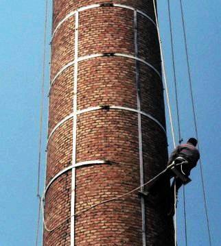 烟囱加固原因分析   通过对烟囱进行测温、化验、有害介质含量、锤击混凝土、缺陷检查以及采取取芯、回弹等报告手段的检查,并分析检查结果发现,烟囱筒身温度、保温层及主体的钢筋混凝土均无异常,但在基础部位外壁有较多环状裂缝,裂缝宽度为0.5-11mm,基础部位有约25%的区域存在空鼓层,深度达20一1lomm,另有两处明显破损区。其症状表现为混凝土剥落,表面有较多纤细粉末,残留的混凝土表面较光滑,沙子较少,石子与沙子粘结力较差,环向钢筋均有外露并锈蚀,锈层厚度2一4mm,另外,挖开地面以下两个区域也有类似症状的空鼓层。